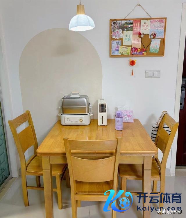 餐桌放在靠墙的位置,刚好摆放下这张小餐桌,平日里三口东说念主用餐坐得下,家里有东说念主来作念客,搬出来伸开餐桌桌面,挤一挤坐下六口东说念主也皆备没问题。