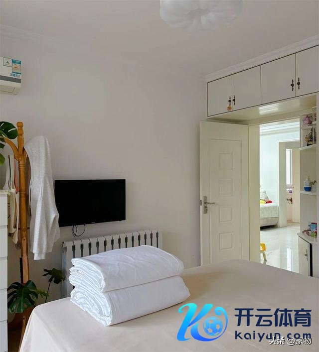 床尾挂一台小电视,傍边也放了柜子和挂衣架,致使连门上头的空间也作念了吊柜,老老旧旧的装修,看起来说不上多紧密,但却是一个家最有烟火气、最有生涯气味的边幅。