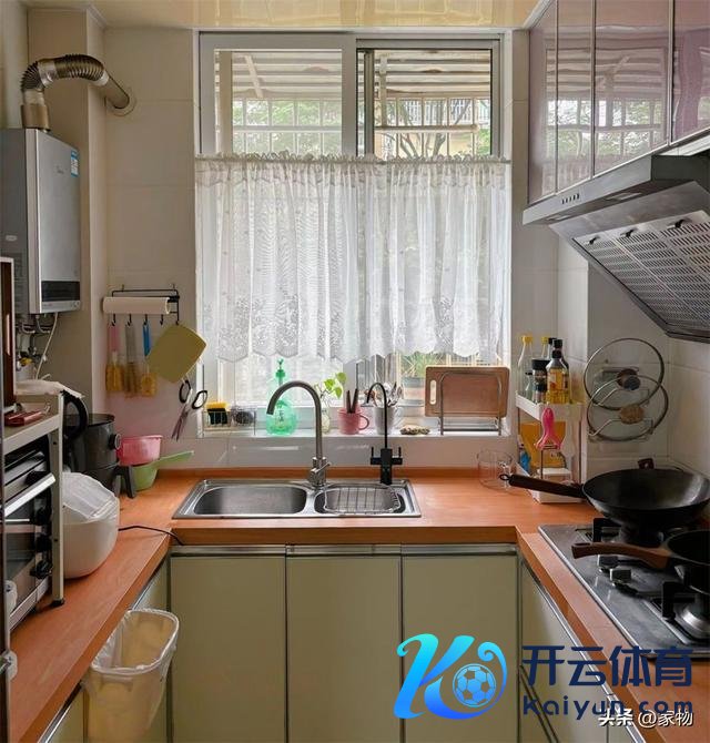 家里的厨房作念成U形口头,靠近窗户,左手边放各样小家电,中间水槽是往常的小双槽,除了洗锅和汤盆有些未便,别的都还好。