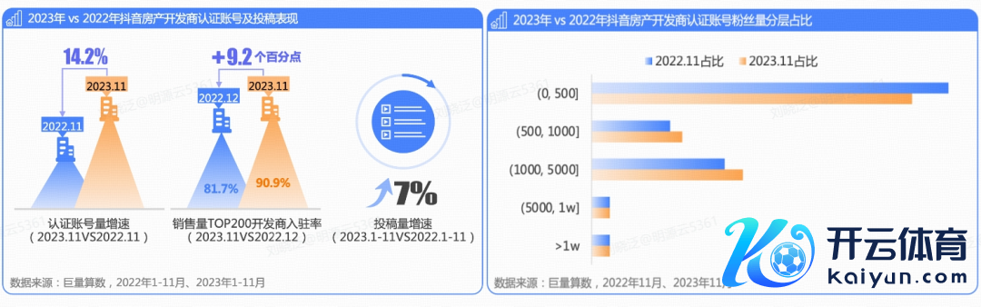 在往日两年里,房企抖音账号认证量增长14.2%,投稿量增长7%,内容和粉丝也在稳步增长。