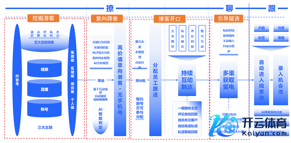 对意向潜客,咱们作念了10倍的放大,把剩下的90%用AI先一齐滤一遍,然后再通过AI撩客功能,闪启齿率、留资率举座效果翻倍。