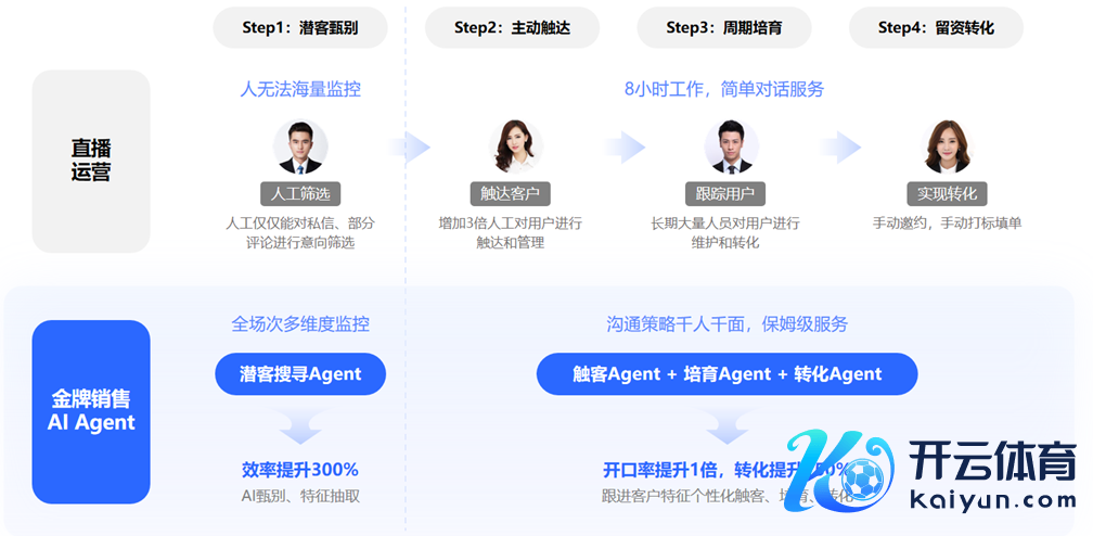 不管从潜在客户的甄别上,如故从捏续触达、孵化、保温,一直到跟踪的迁移,都可以用AI销售员来接纳的,能效可能提高150%~300%。关于高潮阶段的房企来说,可以更进一步放大势能,作念大矩阵。