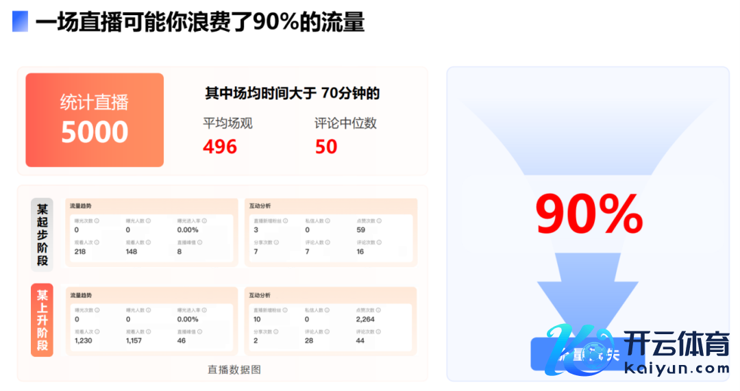 咱们研究了5000场直播数据后发现,场均时候大于70分钟的直播,平均场不雅为496,平均筹商数50个,仅占10%。