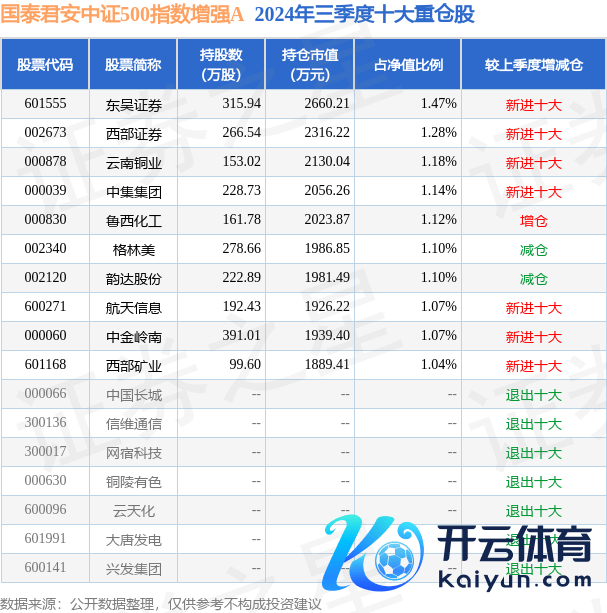 国泰君安中证500指数增强A为指数型-股票基金,说明最新一期基金季报泄漏,该基金钞票设立:股票占净值比94.73%,无债券类钞票,现款占净值比8.07%。基金十大重仓股如下: