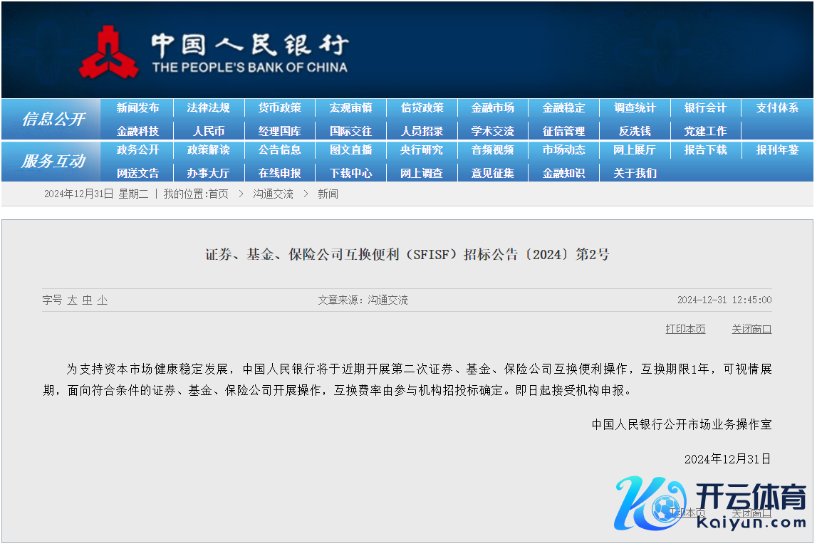 13日午间,央行公告,为援救老本市集健康踏实发展,中国东说念主民银即将于近期开展第二次证券、基金、保障公司互换便利操作,互换期限1年,可视情缓期,面向允洽条目的证券、基金、保障公司开展操作,互换费率由参与机构招投标细目。即日起接纳机构讲演。