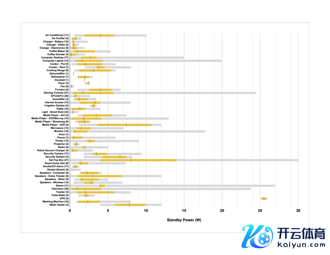 好多东说念主可能齐没念念到,家里这个极其常见又不起眼的机顶盒尽然会悄悄消耗这样多的电量。但在“劳伦斯伯克利国度实际室”的数据中,它的待机功率中位数是 8 瓦,而最大的待机耗电能以致达到 30 瓦。