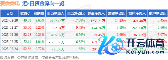 本站音讯,完了2025年2月28日收盘,赛微微电(688325)报收于49.69元,着落9.65%,换手率6.19%,成交量2.37万手,成交额1.22亿元。