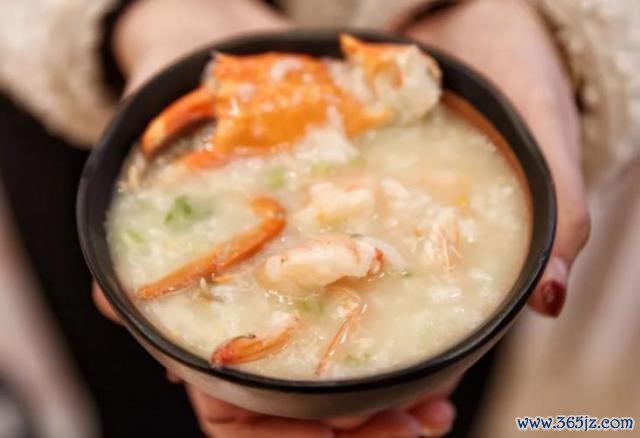 ● 大米放入砂锅简易熬煮成软饭后,加入蟹肉、虾肉,简易搅动;