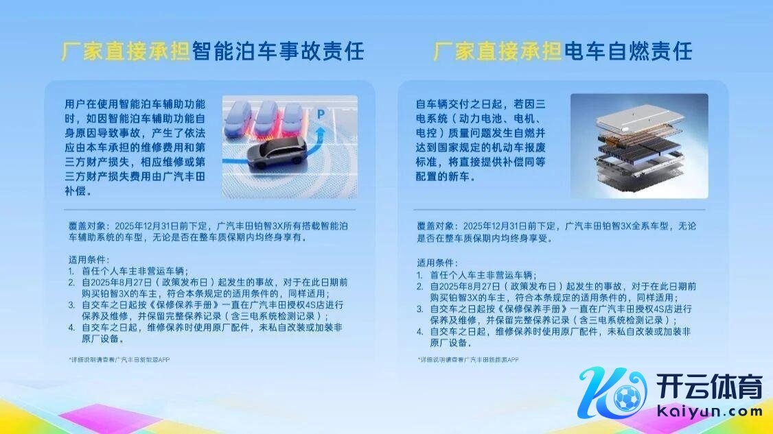 很特真谛,针对用户最和顺的“自燃”、“驾驶援助谁担责”这个问题,广汽丰田是行业中第一个给出应允的车企。